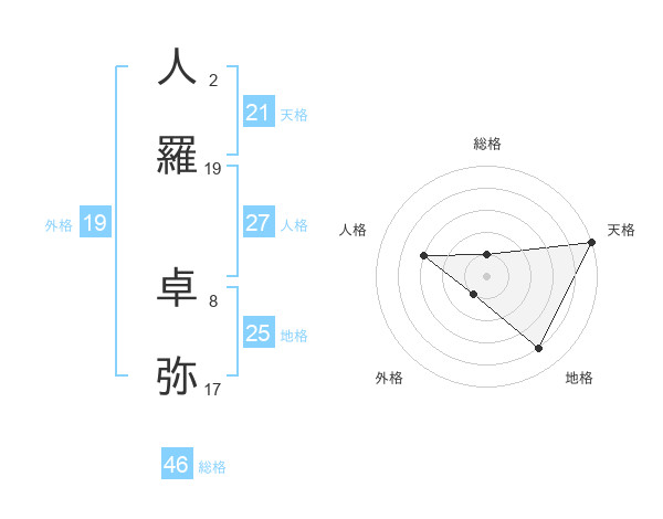 人羅 卓弥さんの天格は21画の5点!