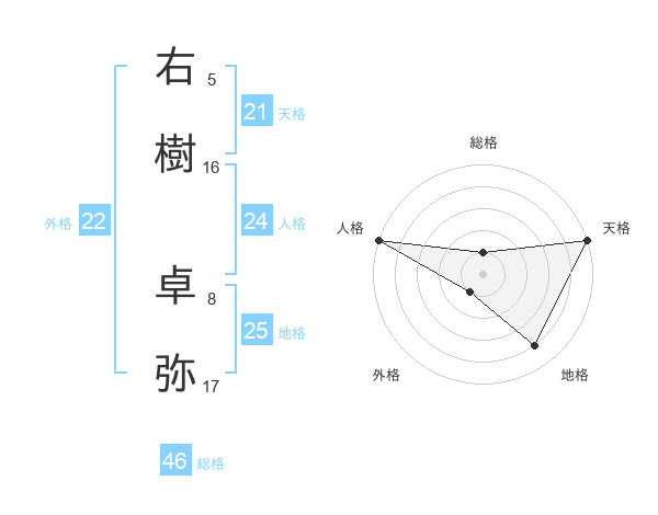 右樹 卓弥さんの外格は22画の1点!