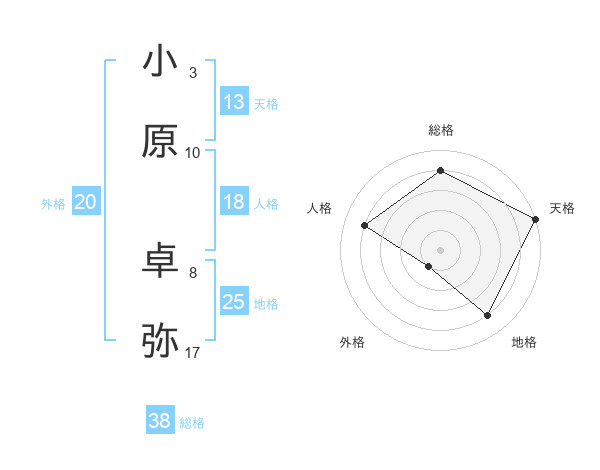 小原 卓弥さんを姓名の画数から五運を鑑定