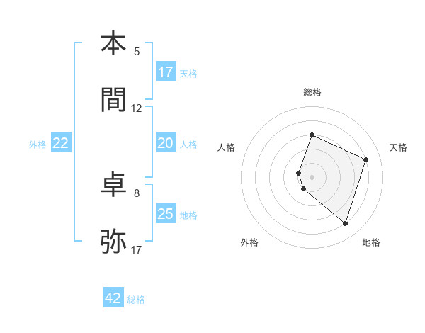 本間 卓弥さんを姓名の画数から五運を鑑定