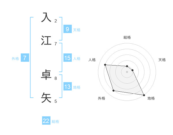 入江 卓矢さんを姓名の画数から五運を鑑定