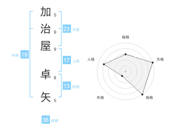 加治屋 卓矢さんを姓名の画数から五運を鑑定