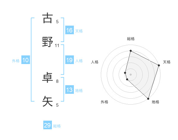 古野 卓矢さんを姓名の画数から五運を鑑定