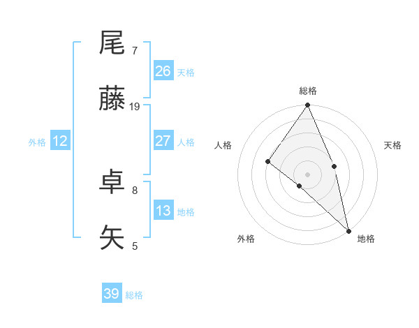 尾藤 卓矢さんを姓名の画数から五運を鑑定