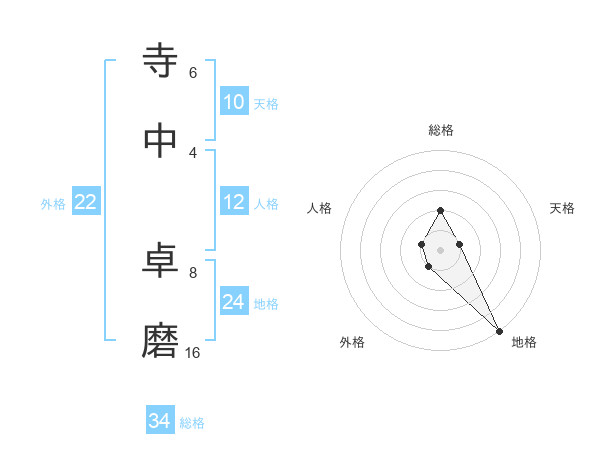 寺中 卓磨さんの総格は34画の2点!