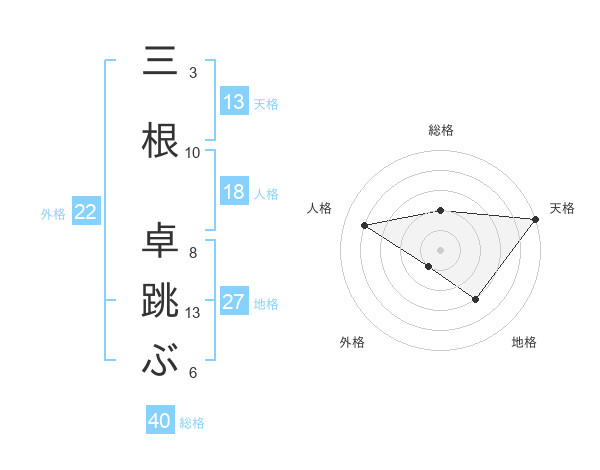 三根 卓跳ぶさんを姓名の画数から五運を鑑定