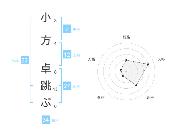 小方 卓跳ぶさんの天格は7画の4点!