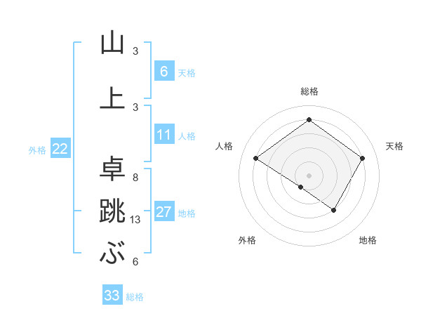 山上 卓跳ぶさんの総格は33画の4点!