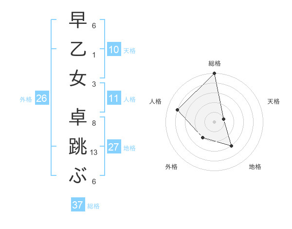 早乙女 卓跳ぶさんの総格は37画の5点!