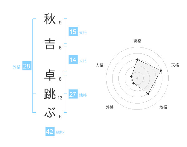 秋吉 卓跳ぶさんの天格は15画の4点!