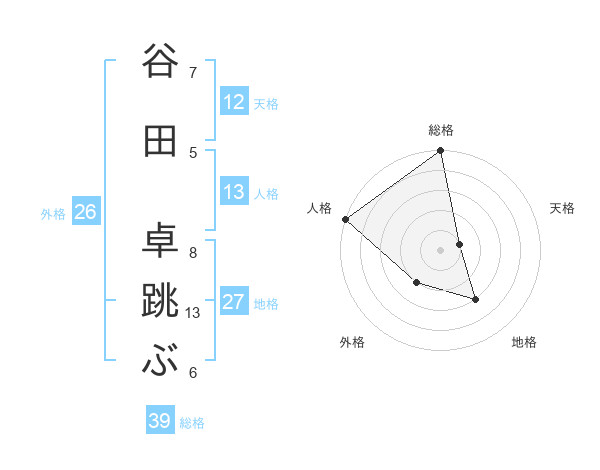 谷田 卓跳ぶさんの地格は27画の3点!