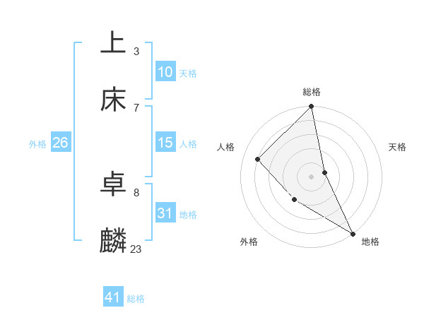 上床 卓麟さんの地格は31画の5点!
