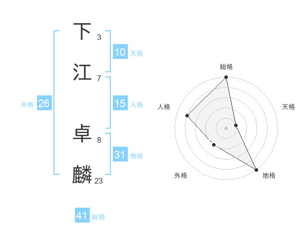 下江 卓麟さんを姓名の画数から五運を鑑定