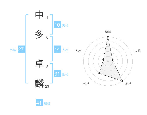 中多 卓麟さんを姓名の画数から五運を鑑定