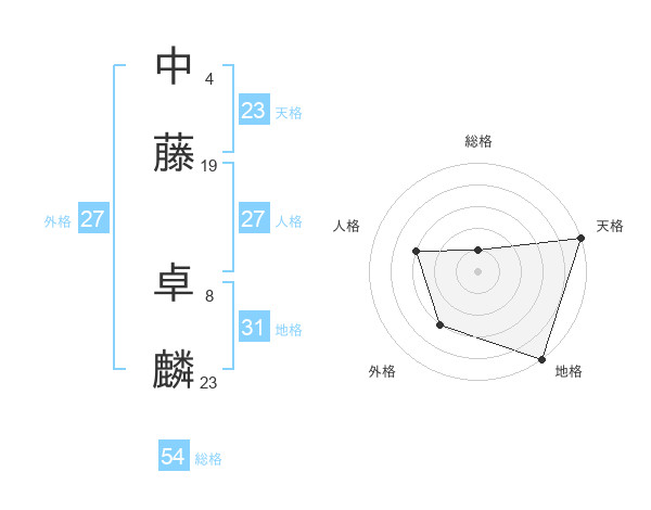 中藤 卓麟さんの天格は23画の5点!