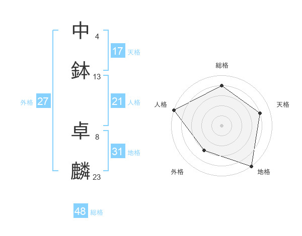 中鉢 卓麟さんを姓名の画数から五運を鑑定