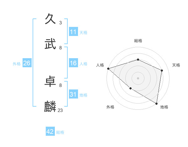 久武 卓麟さんを姓名の画数から五運を鑑定