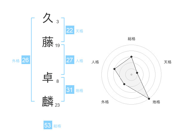 久藤 卓麟さんを姓名の画数から五運を鑑定