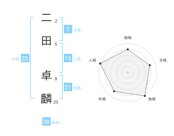 二田 卓麟さんの総格は38画の4点!