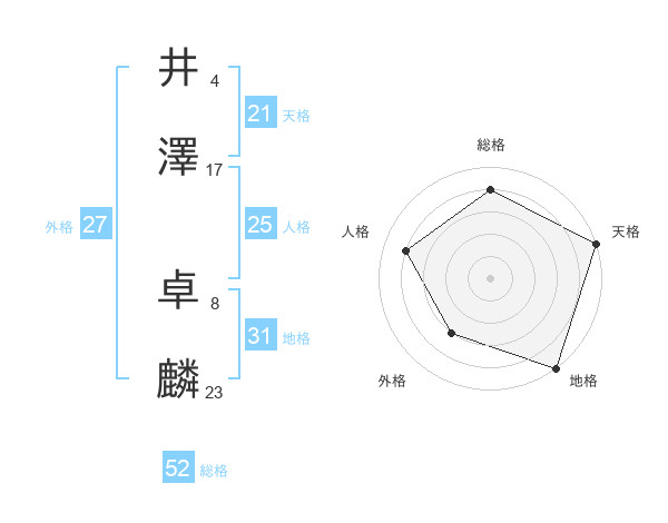井澤 卓麟さんを姓名の画数から五運を鑑定