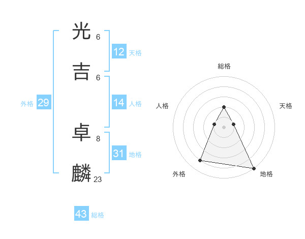 光吉 卓麟さんの総格は43画の2点!
