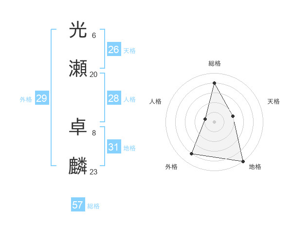 光瀬 卓麟さんの外格は29画の4点!