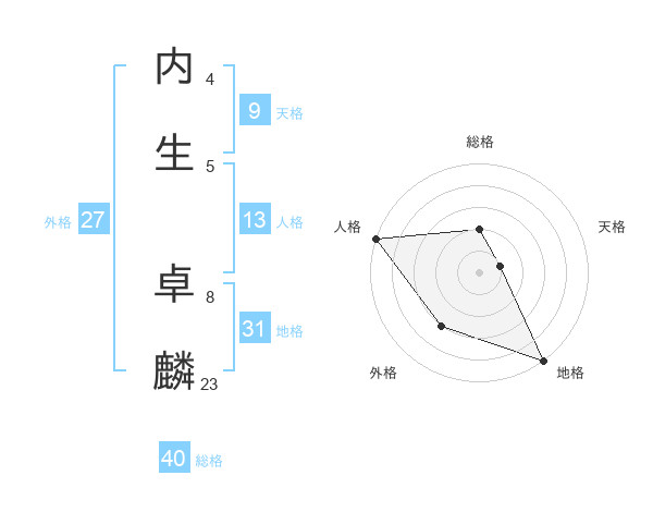 内生 卓麟さんの地格は31画の5点!