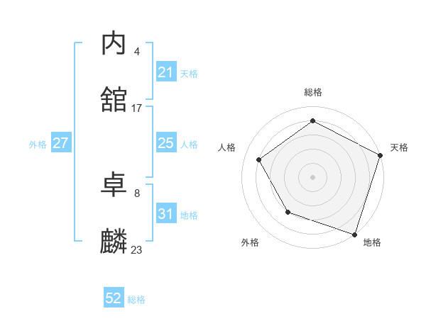 内舘 卓麟さんの総格は52画の4点!
