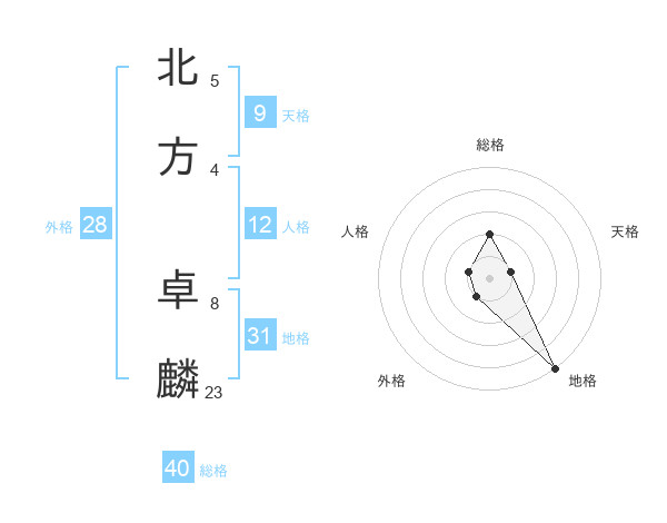 北方 卓麟さんを姓名の画数から五運を鑑定