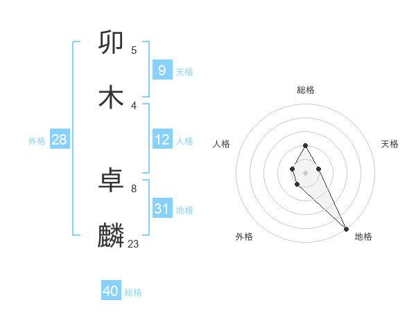 卯木 卓麟さんを姓名の画数から五運を鑑定