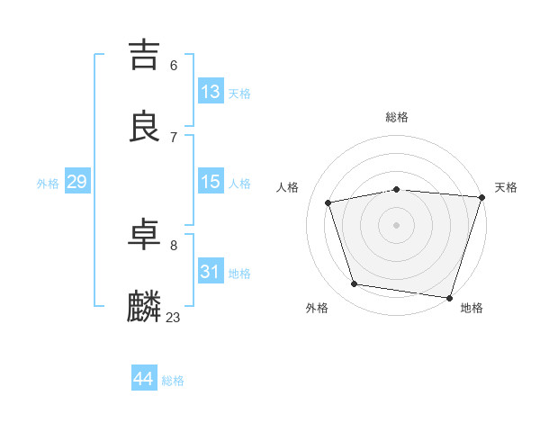 吉良 卓麟さんの総格は44画の2点!