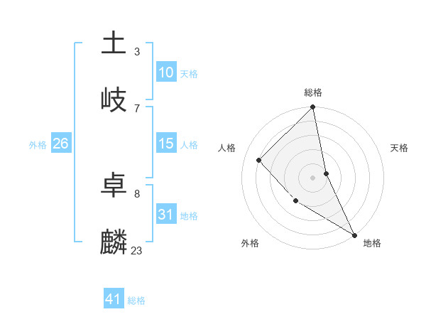 土岐 卓麟さんの総格は41画の5点!