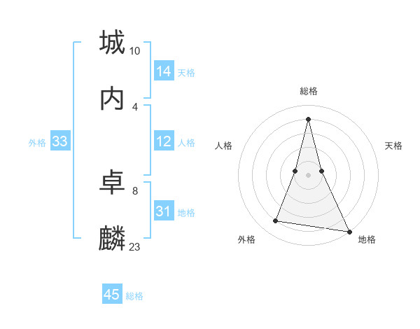 城内 卓麟さんの総格は45画の4点!