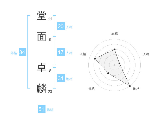 堂面 卓麟さんを姓名の画数から五運を鑑定