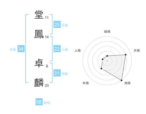 堂鳳 卓麟さんの総格は56画の1点!