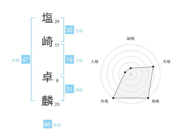 塩崎 卓麟さんの総格は66画の1点!