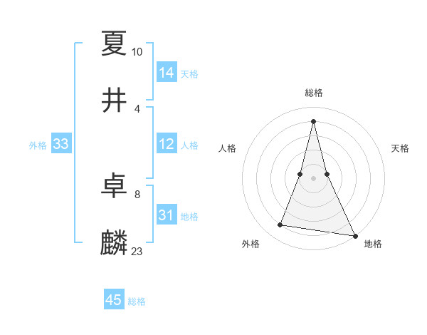 夏井 卓麟さんの総格は45画の4点