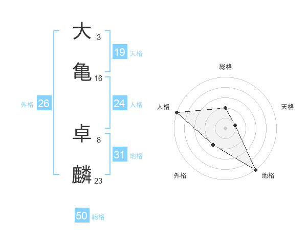 大亀 卓麟さんの総格は50画の2点!