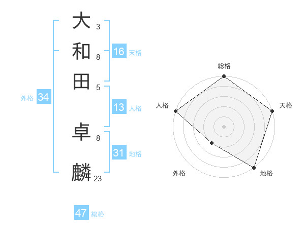 大和田 卓麟さんの総格は47画の5点!