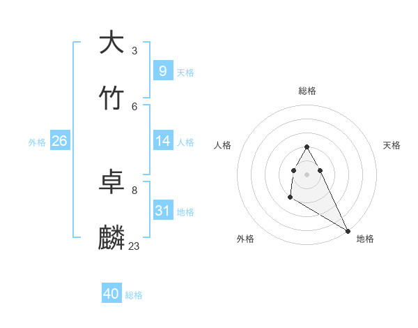 大竹 卓麟さんの総格は40画の2点!