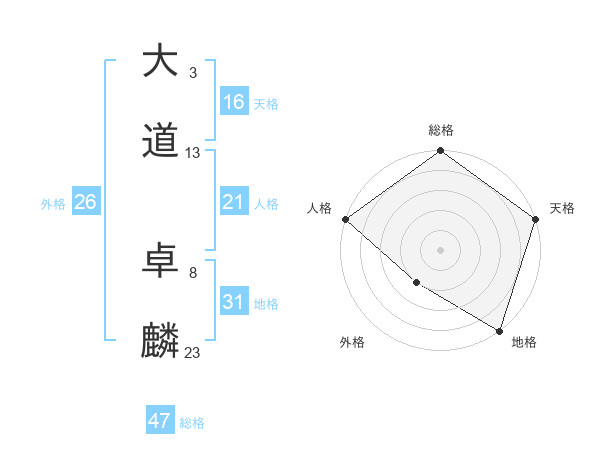 大道 卓麟さんを姓名の画数から五運を鑑定
