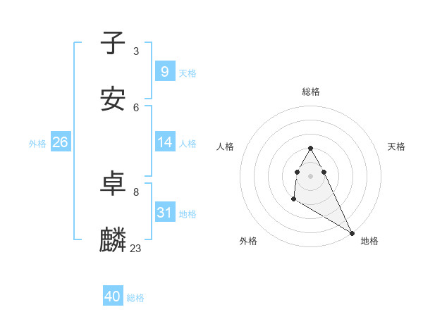 子安 卓麟さんの総格は40画の2点!