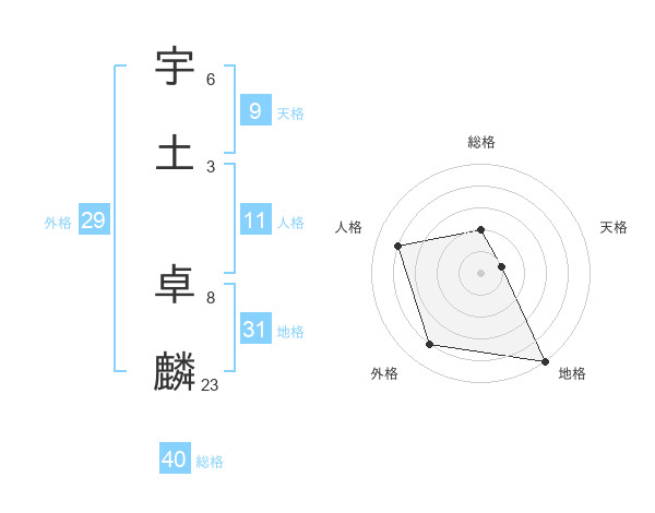 宇土 卓麟さんの総格は40画の2点!