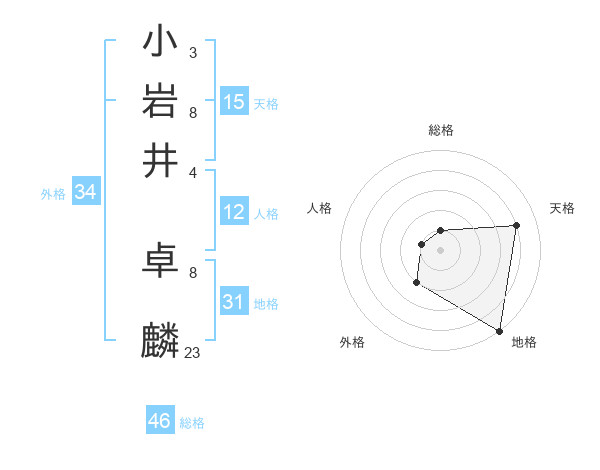 小岩井 卓麟さんの総格は46画の1点!
