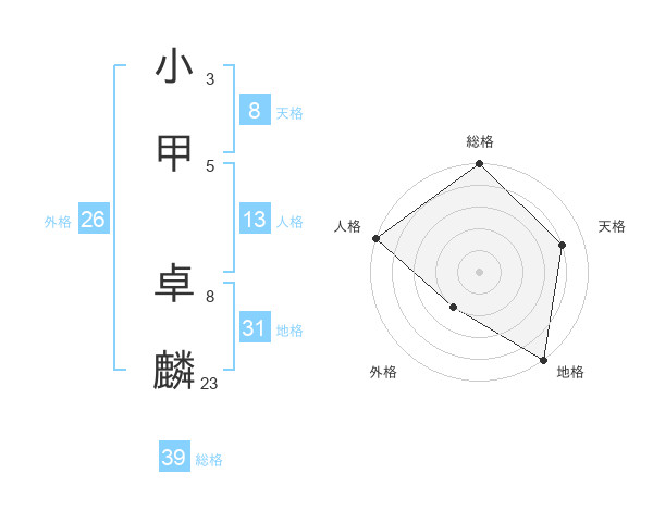 小甲 卓麟さんの総格は39画の5点!