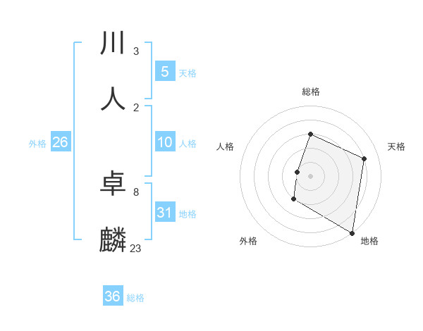 川人 卓麟さんの天格は5画の4点!
