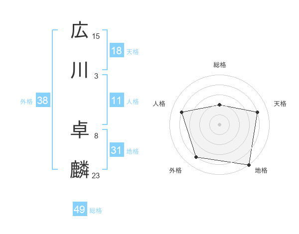 広川 卓麟さんの天格は18画の4点!