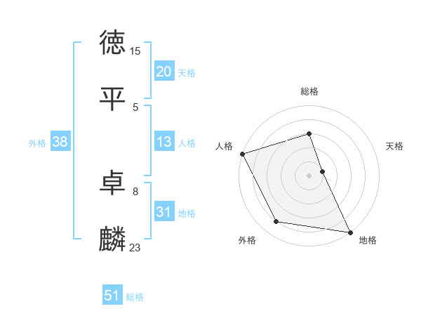 徳平 卓麟さんの総格は51画の3点!