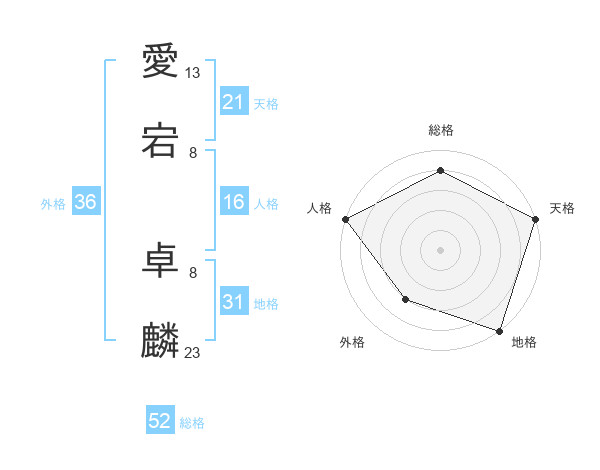 愛宕 卓麟さんの天格は21画の5点!