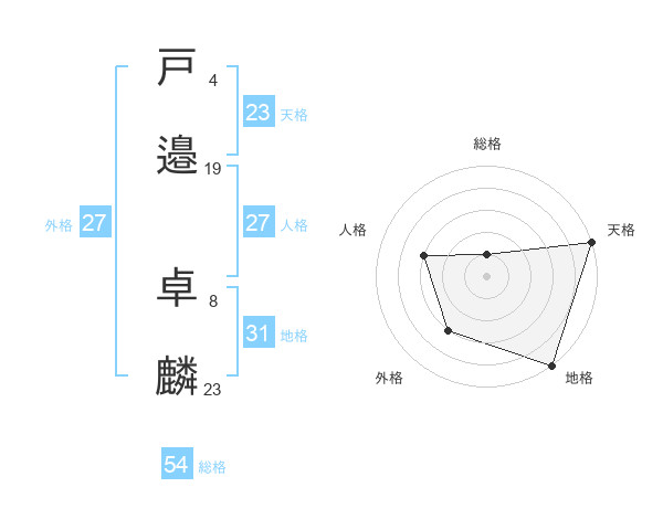 戸邉 卓麟さんの総格は54画の1点!